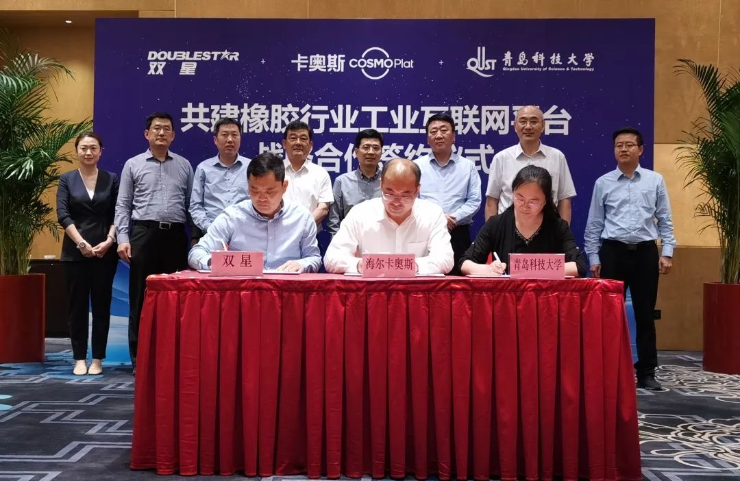 6月8日下午,MK体育官网与双星集团、海尔卡奥斯在海尔洲际酒店举行共建橡胶工业互联网平台战略合作签约仪式。董事长陈克正、海尔集团总裁周云杰、双星集团董事长柴永森,市国资委主任、党委书…