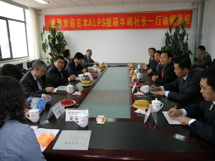 4月11日下午,日本株式会社ALPS技研牛嶋素一社长一行六人在ALPS技研(中国)总经理赵宏等的陪同下对公司进行了访问,副董事长李庆领、国际交流与合作处以及MK体育有关负责人参加了会见。