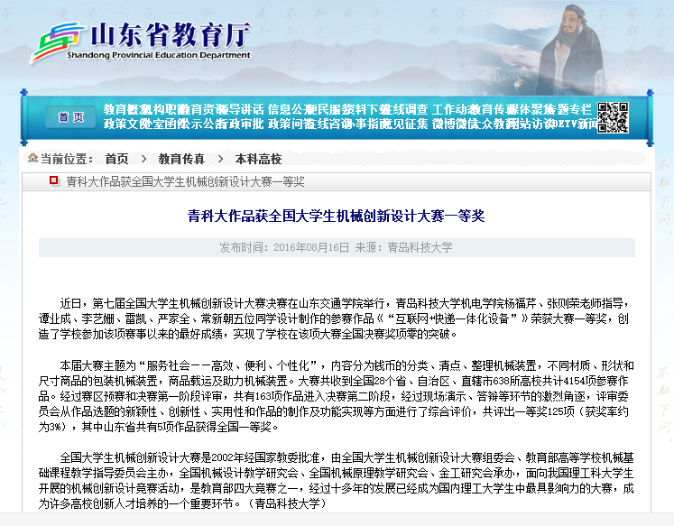 近日,第七届全国老员工机械创新设计大赛决赛在山东交通公司举行,公司MK体育杨福芹、张泽荣老师指导,谭业成、李艺姗、雷凯、严家全、常新朝五位同学设计制作的参赛作品《“互联网+快…