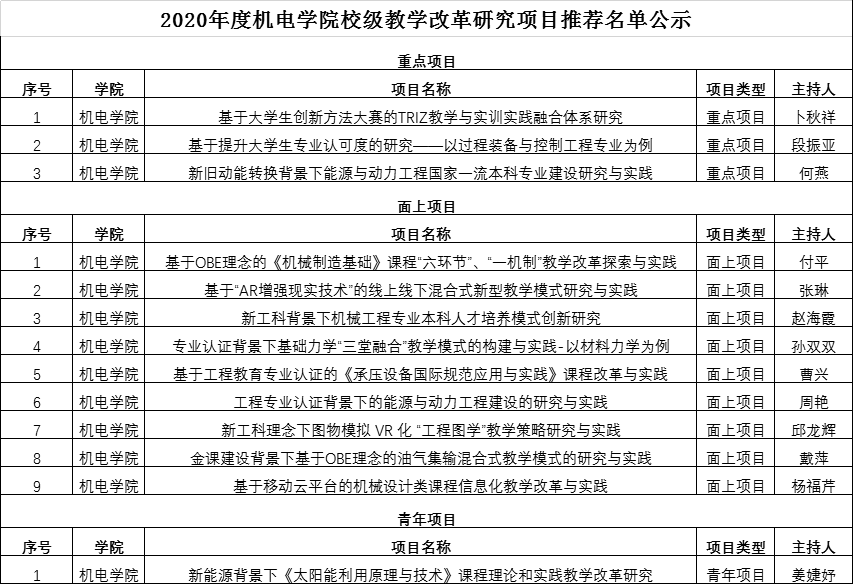 根据公司《关于开展2020年度校级本科教学改革研究项目立项申报暨2018年度校级教改项目结题工作的通知》要求,MK体育开展了校级教改项目评审工作,经项目负责人申报,公司评审,共通过验收准予结题10项(其中2项暑期提前结题),推荐新立项13项,现将结果公示如下: