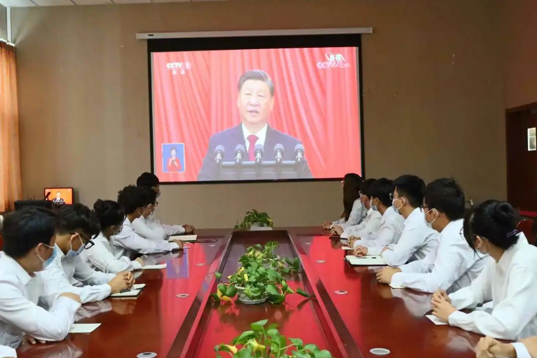 各党支部、团学组织以集中、分散相结合的形式组织员工收看大会盛况。