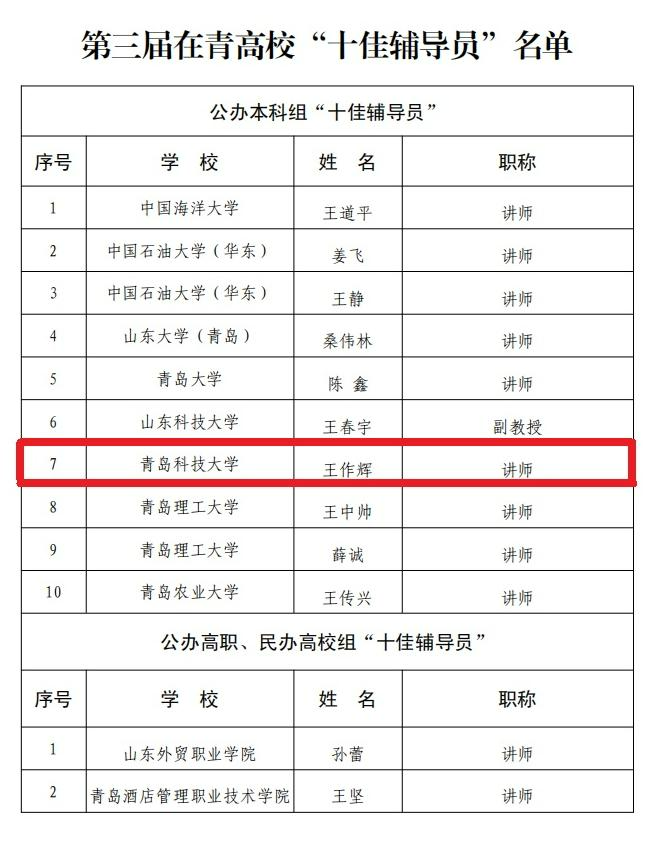 在第三届在青高校“十佳思政名师”和“十佳辅导员” 评选活动中,MK体育辅导员王作辉获评在青高校“十佳辅导员”荣誉称号。