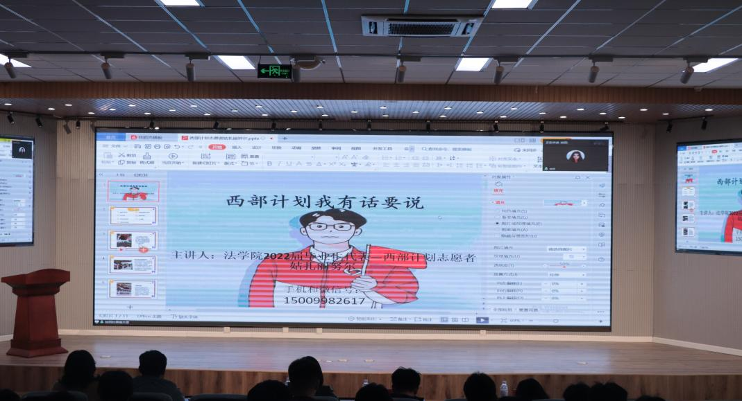 会议围绕西部计划的总体情况、政策相关内容、招募流程以及志愿者日常生活工作等主题进行介绍,并对乡村教育、服务乡村建设、健康乡村、基层青年工作、乡村社会治理、服务新疆、服务西藏,西部计划流程做重点讲解,为同学们捋清思路、做好梳理。