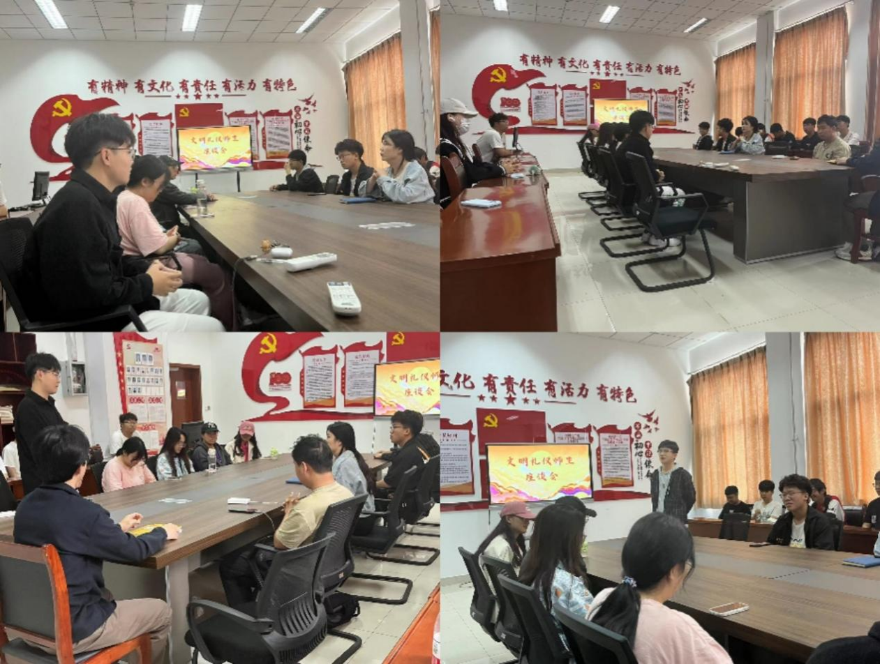 组织举办文明礼仪师生座谈会,邀请公司相关部门负责人、文明礼仪方面专家、辅导员及员工代表参加,重点围绕校园不文明行为的现状及解决措施,老员工文明礼仪教育及日常行为规范等畅所欲言、建言献策,凝聚思想共识。