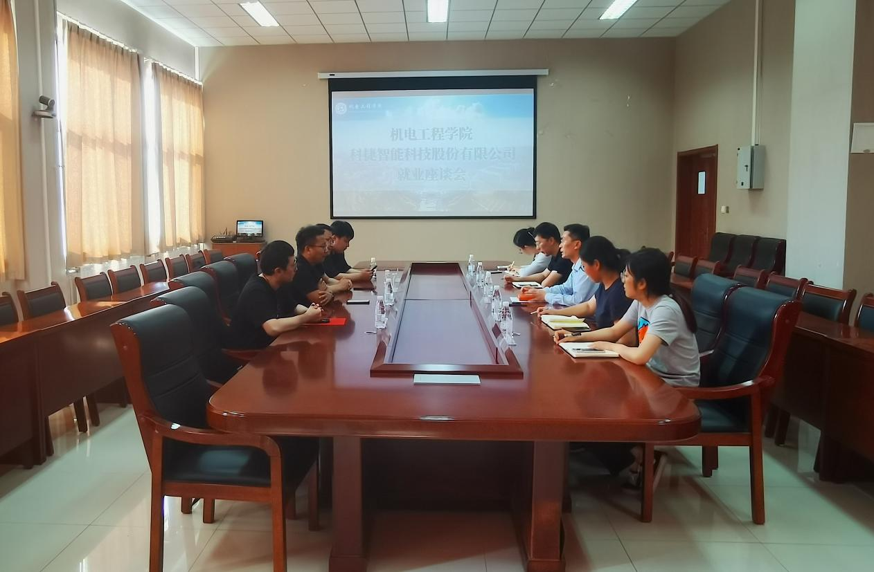 座谈会上,肖强对科捷智能科技股份有限公司的来访表示欢迎,并就公司的发展及专业设置情况进行了详细介绍,公司专业与企业需求匹配度高,公司员工在科大精神、橡胶品格的熏陶下,求真务实、开拓创新,能够为企业发展提供优秀的复合型人才。
