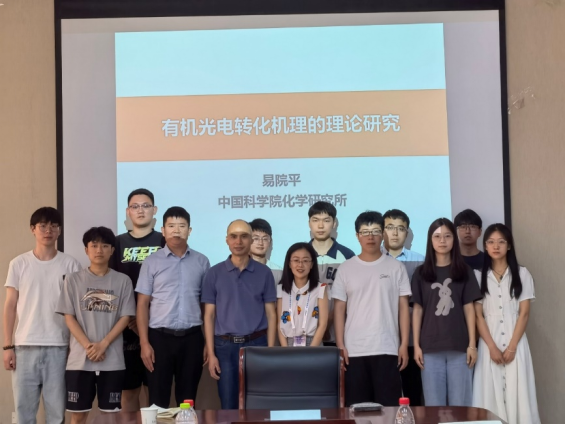 有机体系是由分子间弱相互作用结合而成,具有柔性的特点,使其电子态趋向局域化并深受周围环境和分子振动的影响,因此有机光电材料的光电性质机制复杂。易院平研究员为大家详细讲解了有机光伏的理论模拟,概述了有机太阳电池的光-电转换过程,重点阐述了有机光伏材料激发态的本质和能级结构对电荷产生和能量损失的重要调控作用,揭示了分子结构和聚集态结构的影响,并展示了目前在该领域取得的前沿研究成果。同时,与各位老师员工就研究中遇到的问题进行了交流,报告内容精彩,师生收益颇丰。