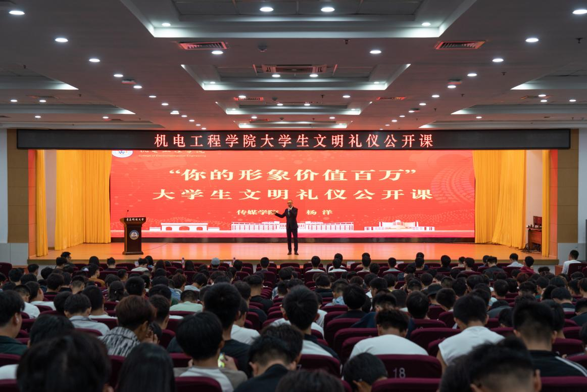 传媒公司杨洋老师讲授老员工文明礼仪公开课。现场邀请员工上台互动,营造学礼、明礼、尊礼、用礼的浓厚氛围,与会同学纷纷表示在校园日常生活中要将言语化为行动,倡树文明新风,争做时代新人,不断展现机电学子良好风采。