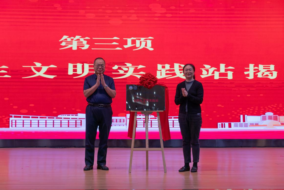 公司党委常委、副董事长丁林与MK体育经理何燕为公司老员工文明实践站揭牌。