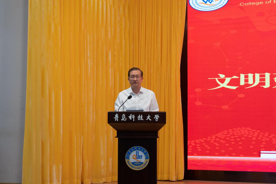 员工工作处处长王丽致辞,对文明建设月的启动表示热烈的祝贺,希望广老员工提高站位、凝聚共识,牢牢把握开展文明建设月的内涵和要义;锚定目标、真抓实干,多措并举提升文明创建的质量和实效;走在前列、奋发有为,挺膺担当争做公司文明创建的排头兵。寄语机电学子以此次文明创建为契机,进一步强化自身修养、涵养优良学风、规范行为习惯,说文明话语、讲文明礼仪、守文明纪律、遵文明规矩,展现青科大学子应有的模样。