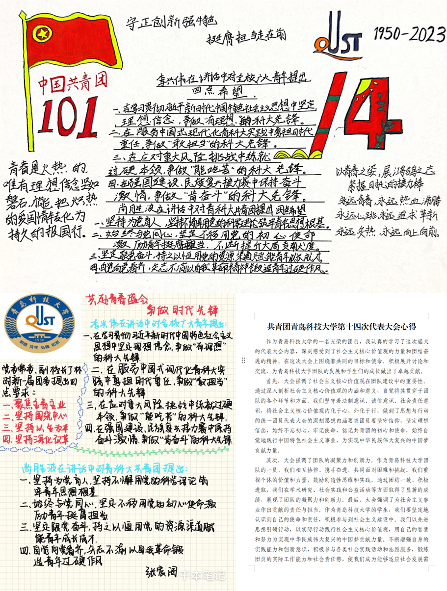 此外,公司组织同学们根据学习成果,创作各类作品。活动自10月31日正式启动以来,得到了广大同学的积极响应和热情参与,共征集到作品30余份。内容涵盖精读笔记、读书心得、手抄报作品等艺术体裁,作品紧扣团代会主题,真实传递了同学们坚定不移听党话、跟党走的坚定决心,以及在新时代新征程上脚踏实地、不忘初心、砥砺前行的坚定信念。