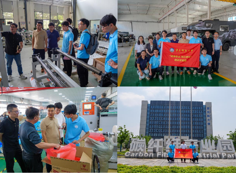 为积极响应公司有组织科研号召,进一步探寻碳纤维复合材料产业创新发展潜在突破点,7月11日,“碳维管至 独出新材”调研实践团师生一行深入威海市临港区碳纤维产业园,深入威海拓展纤维有限公司、山东泰昱精工科技有限公司、威海庚鑫复合材料科技有限公司、威海富碳科技有限公司进行参观交流,围绕“高性能碳纤维材料产业化制备、连续化碳纤维预浸料生产工艺、碳纤维材料模压成型工序”等主题进行了深入的学习与探讨。