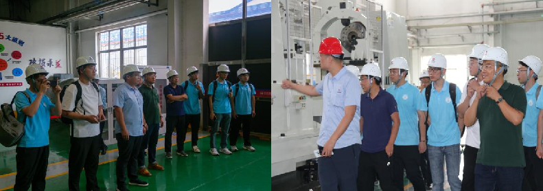 同学们来到精密机械板块,副总经理黄海超向员工介绍板块发展历史、主营业务、科研专利情况,并对车间生产流程进行了具体讲解。