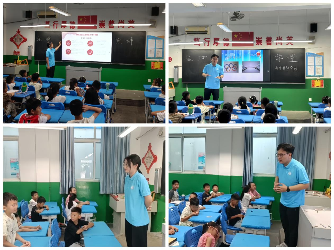 团队围绕当下校园欺凌、暑期交通安全等热点问题以及科技创新的主题精心备课,用通俗易懂的语言和生动有趣的案例为孩子们上了一堂别开生面的普法教育和科学实验课。