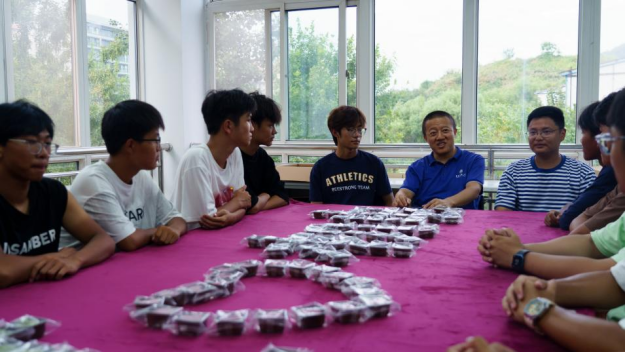 9月17日,在公司一站式社区,公司组织新生临时负责人座谈会,向各个班级发放印制“明德、笃学、弘毅、拓新”青科大校训的月饼,并通过大家转达公司对于新生的中秋祝福。杨小明询问新生入学以来对日常生活和军训的感受,希望同学们牢记第一个不在父母身边的中秋,通过现代通讯手段多与父母沟通。杨小明希望大家在接下来的训练中,认真参加训练,精益求精,养成良好习惯,学会独立生活。