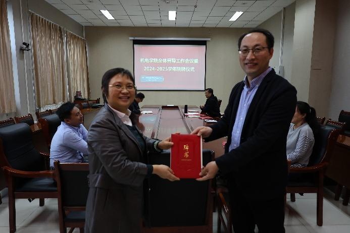 副经理李剑光为新学年聘任的院教学督导一一颁发聘书。由于校院两级改革的深化和校质量管理部门职能转变,本学年最大的变化是,有更多的校督导回归公司,带来丰富督导经验同时,充实了院督导队伍。