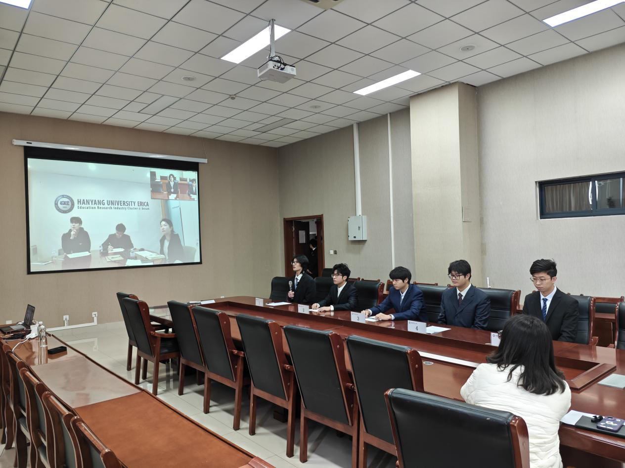 2025年1 月 16 日,韩国汉阳大学顺利开展2023级MK体育中韩合作办学出国面试选拔。本次面试选拔依托线上会议在MK体育518 会议室进行。汉阳大学ERICA校区教授Keun Ryu、汉阳大学ERICA校区教授Andrew Choi、国际处项目负责人朴美颖负责面试评审,公司25 名员工参与本次面试选拔。