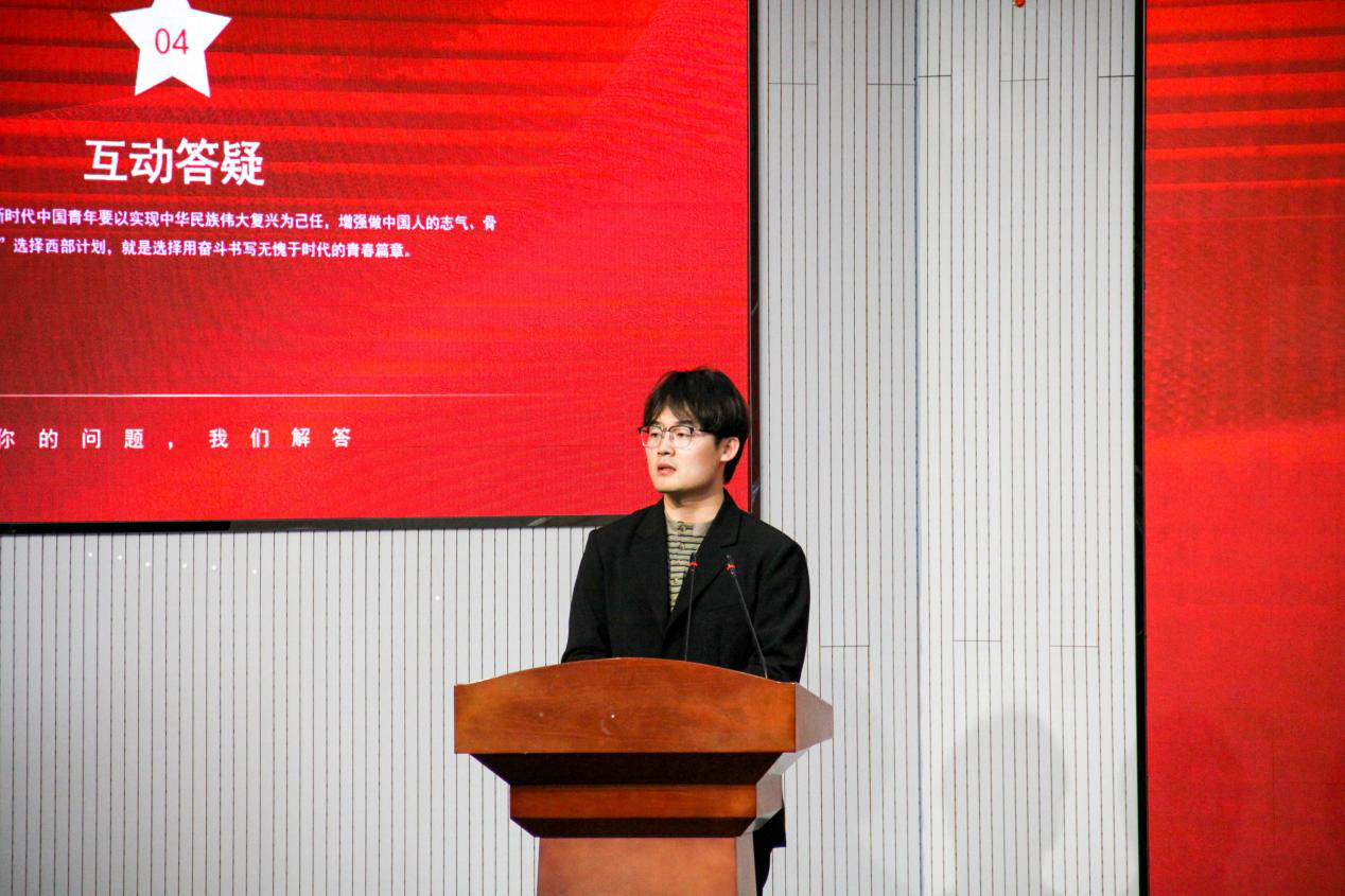 全国老员工志愿服务西部计划优秀志愿者、2011届毕业生刘猛回顾了自己在西部志愿服务期间的成长与收获,强调了西部计划对个人成长和社会贡献的双重意义。公司团委书记兼学工办主任逄柏鹏详细介绍了西部计划的具体情况,包括报名流程、服务内容、政策支持等信息。MK体育官网第24届研究生支教团银川分队成员耿宇轩分享了自己在西部支教期间的经历与感悟。