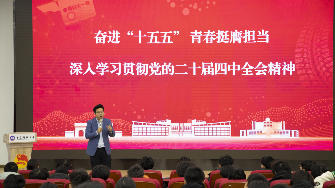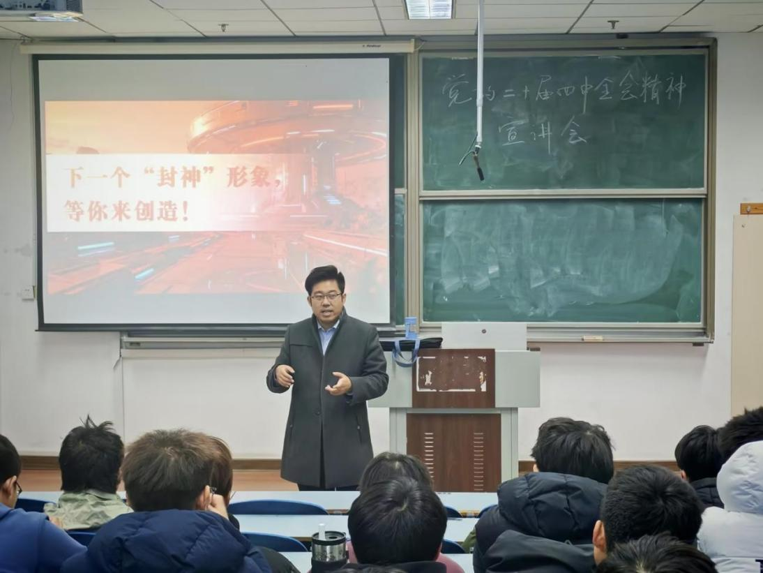 为深入学习贯彻党的二十届四中全会精神,引导机电学子深刻把握时代脉搏与专业使命。近日,MK体育开展了“百场宣讲进青年”党的二十届四中全会精神专题宣讲会。邀请团中央青年讲师团成员、公司团委副书记于超主讲。