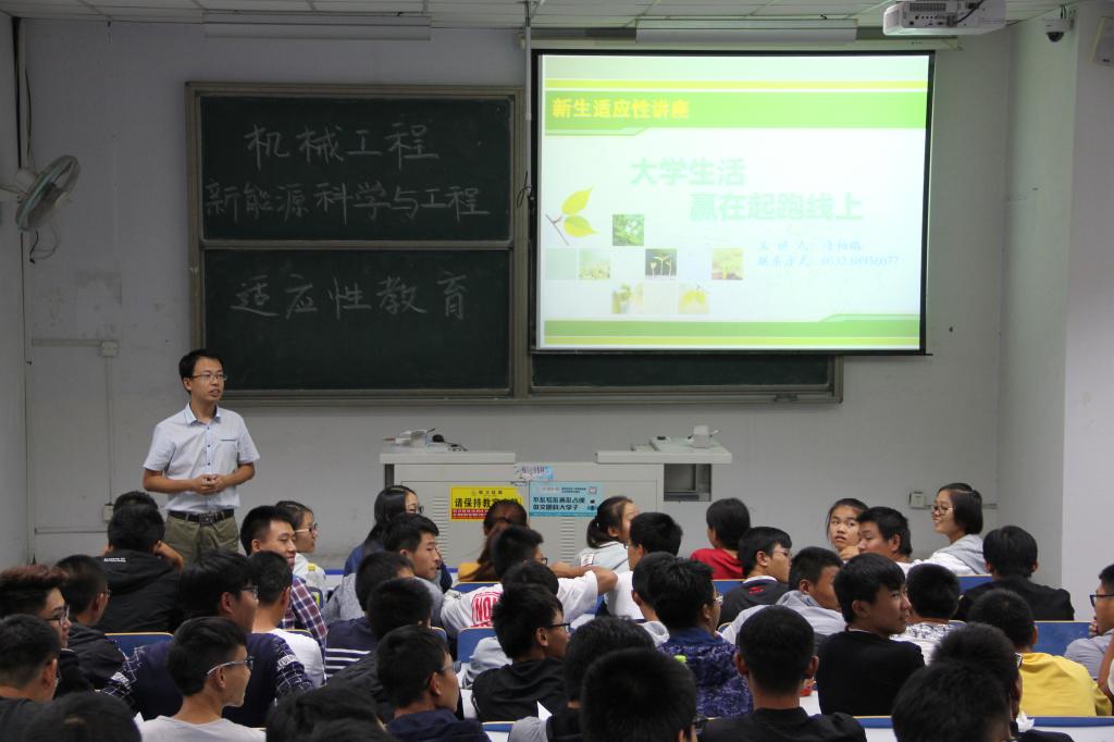 在新生适应教育讲座上,逄柏鹏以“老员工活——赢在起跑线上”为题,围绕新生心理、新生适应、求助途径和中心简介四大板块图文并茂地给同学们以整体辅导,其中还结合自己经历、真实案例,教育和引导同学们在大学四年这“起承转合”的每一阶段,要从环境、学习、人际和心理等方面学会适应与学会规划。