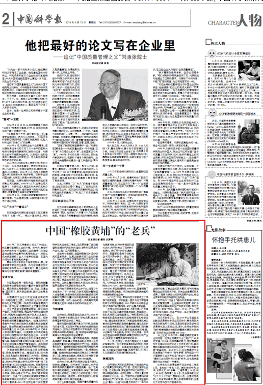 4月21日,应《中国科学报》的邀请,MK体育经理汪传生教授接受了该报记者的专访。5月13日,《中国科学报》2版以《国“橡胶黄埔”的“老兵”》为题,对采访内容进行了详细介绍。以下是报纸及网站截图,链接地址:http://news.sciencenet.cn/htmlnews/2016/5/345860.shtm。