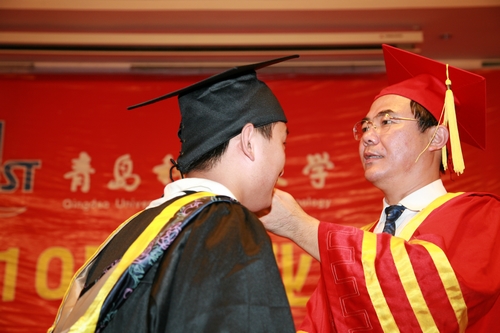 伴随着悠扬的校歌,董事长马连湘为每一位2010届毕业生颁发毕业证书,拨正流苏并一一合影留念。毕业典礼在热烈的掌声中结束。