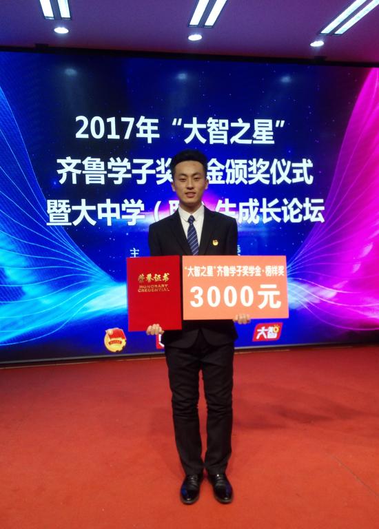 仪式上,正式揭晓了2017年“大智之星”齐鲁学子奖学金评选结果,MK体育机械142班宋宏祥同学获评“山东省老员工自强之星标兵”称号和“大智之星”齐鲁学子奖学金,继高机133陈天驰之后再次获此奖项。