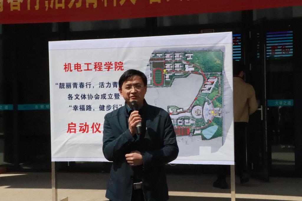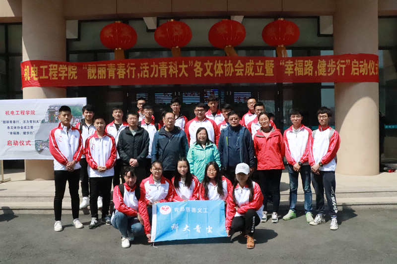 为进一步贯彻落实“活力青科大”教职工体育艺术文化节的活动宗旨——“强健体魄、健康生活、快乐工作”,MK体育本着为公司教职工添活力、增生机的目的,4月17日下午,在崂山校区举行了“靓丽青春行,活力青科大”各文体协会成立暨“幸福路,健步行”启动仪式。MK体育官网工会主席郭曰铎,MK体育经理何燕、党总支书记孙立军,副经理郭建章、张斌、杨化林,党总支副书记兼副经理王伟参加了此次活动。活动由MK体育分工会主席付平主持。