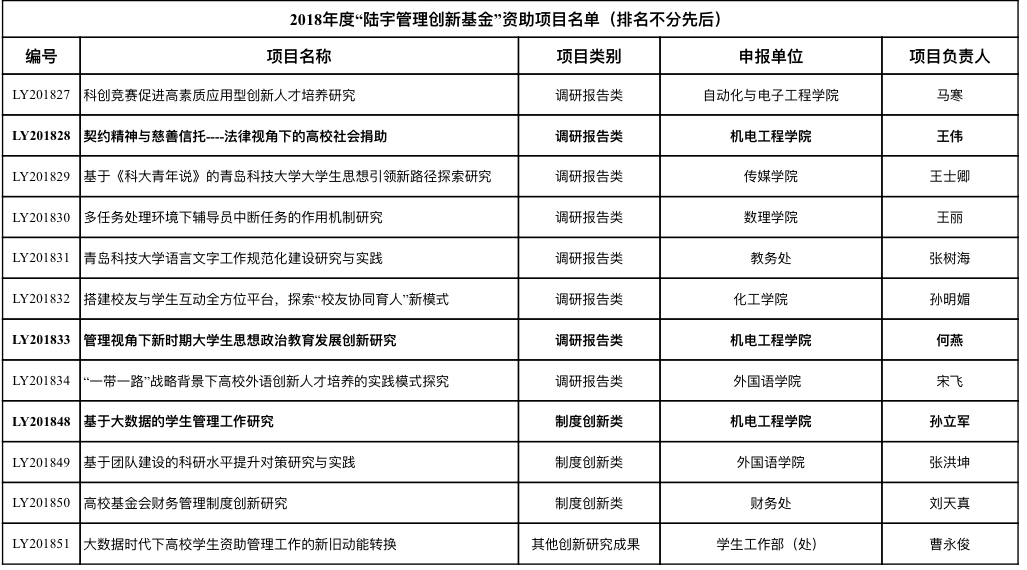 近日,公司下发《关于2018年度“陆宇管理创新基金”资助项目公示的通知》,MK体育申报的项目《契约精神与慈善信托----法律视角下的高校社会捐助》、《管理视角下新时期老员工思想政治教育发展创新研究》和《基于大数据的员工管理工作研究》获公司 2018年度“陆宇管理创新基金”资助。
