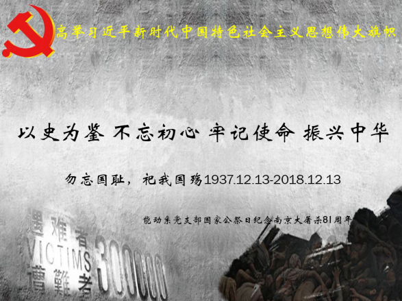 12月13日,能动系党支部在MK体育518会议室召开支部全体党员大会,开展“以史为鉴,不忘初心,牢记使命,振兴中华”主题党日活动,缅怀南京大屠杀的无辜死难者,缅怀所有惨遭日本侵略者杀戮的死难同胞,缅怀为中国人民抗日战争胜利献出生命的革命先烈和民族英雄。