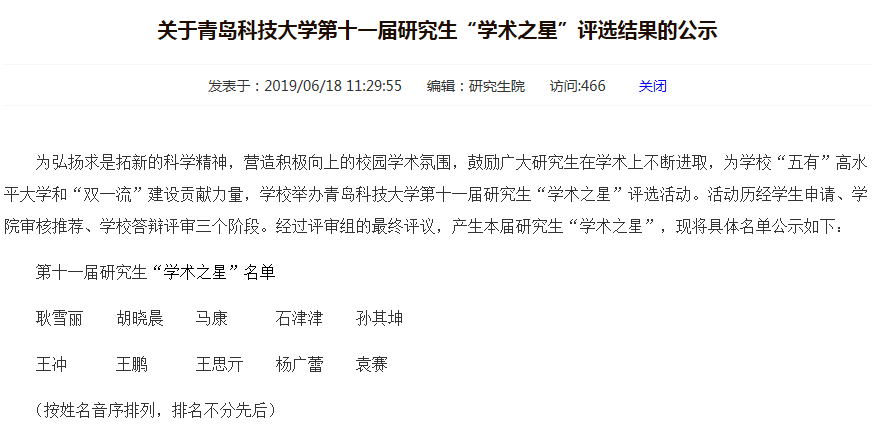 据悉此次活动是为弘扬求是拓新的科学精神,营造积极向上的校园学术氛围,鼓励广大研究生在学术上不断进取,为公司“五有”高水平大学和“双一流”建设贡献力量而举办的,共评选出十位学术之星。