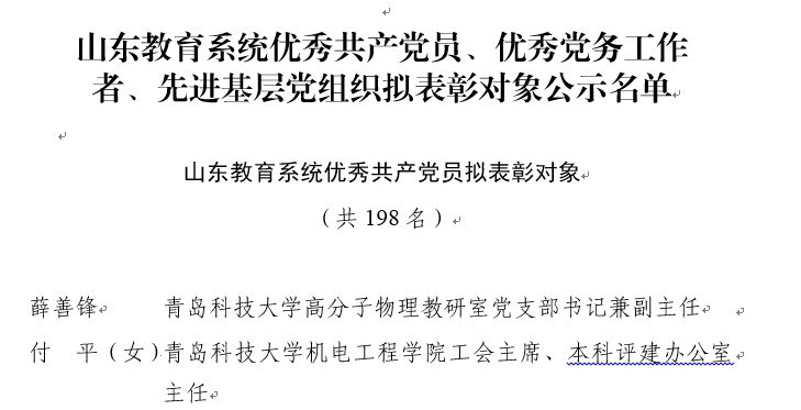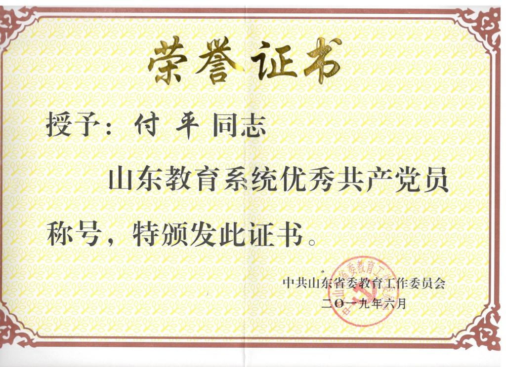 近日,在山东省教育厅公布的山东省教育系统优秀共产党员、优秀党务工作者、先进基层党组织名单中,公司付平老师名列其中。