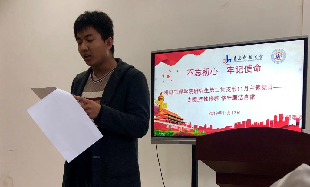 根据公司“不忘初心、牢记使命”主题教育要求,11月12日下午,MK体育研究生第三党支部在机电楼529会议室开展“加强党性修养、恪守廉洁自律”专题教育活动,会议由公司党总支副书记兼副经理、支部书记王伟主持。
