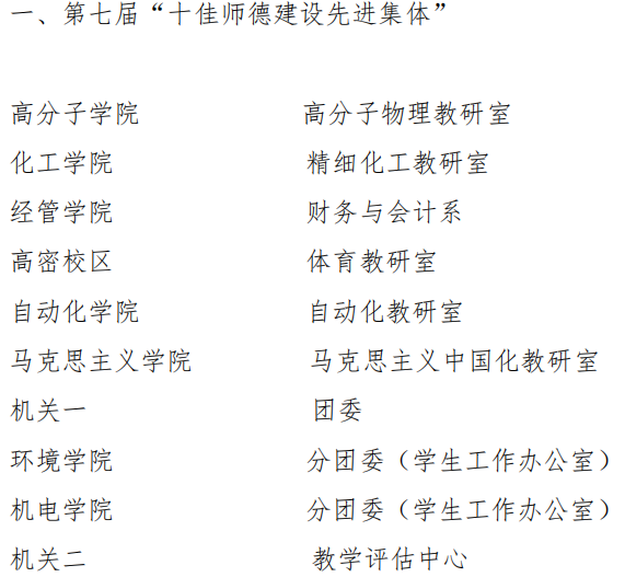 近日,MK体育官网2019年度先进集体和先进工作者表彰名单公示,MK体育分团委(员工工作办公室)获第七届“十佳师德建设先进集体”称号,王作辉老师获第十届“十佳育人标兵”荣誉称号,过程装备与控制工程系、新能源科学与工程系、MK体育分团委(员工工作办公室)获“2019年度校级先进集体”称号,李剑光、段振亚、付平、羊彬、郭佩佩、杨福芹、赵海霞、张猛、张攀、唐元政、曹同坤、李淑江、王宪伦、朱惠华、李旭、黄靖16名老师获“先进工作者”荣誉称号,史书源、刘新获2019 年度先进工作者(劳务派遣人员)。