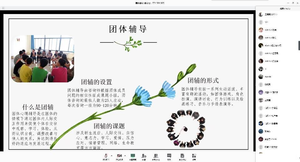 与以往的培训不同的是现在我们正处于疫情的居家隔离期间,在线上大家看不见摸不着,互相只靠文字去揣摩彼此的心意,更容易崩起心理敏感的人的神经。老师结合疫情实际与同学们分享了在家期间大家可能出现的心理问题,以及大家应如何在线上“云宿舍”中调节大家的关系,引起了同学们的强烈共鸣。大家与老师积极互动,感谢此次培训给大家带来的经验并相邀在培训后深入讨论交流。