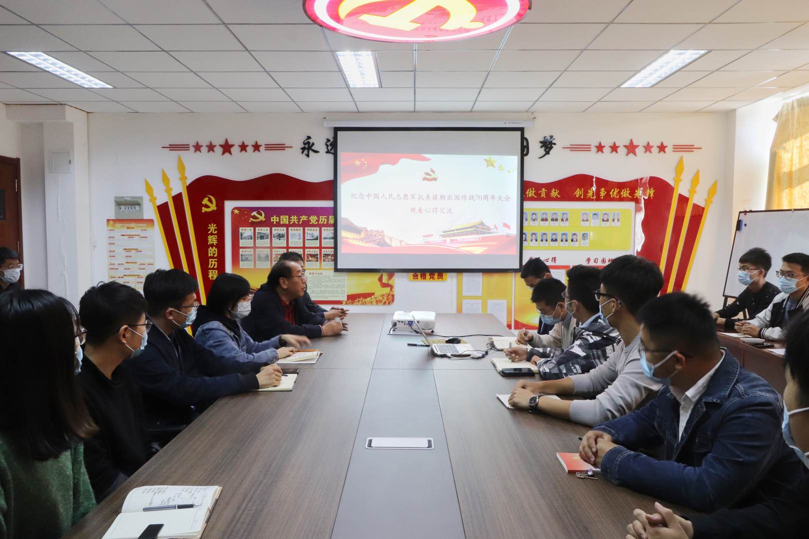 10月23日上午,纪念中国人民志愿军抗美援朝出国作战70周年大会在人民大会堂隆重举行,公司组织全体师生党员观看了大会直播,并认真聆听、学习了习近平总书记在大会上的重要讲话。