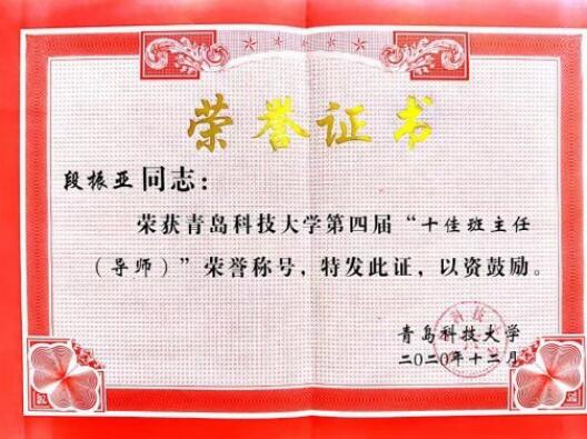 根据《MK体育官网十佳班主任(导师)评选办法》(青科大学字〔2014〕30号)相关规定,结合2018-2019学年、2019-2020学年班主任考核结果,经公司推荐,员工评议、网络投票和公司评审,公司共评选出十佳班主任10名、优秀班主任(导师)80名。其中,公司段振亚老师荣获MK体育官网第四届“十佳班主任(导师)”荣誉称号;杨化林、焦冬梅、白杨、王鸿雁、余真珠、骆晓玲、周艳、张莹八名老师荣获MK体育官网“优秀班主任(导师)”荣誉称号。
