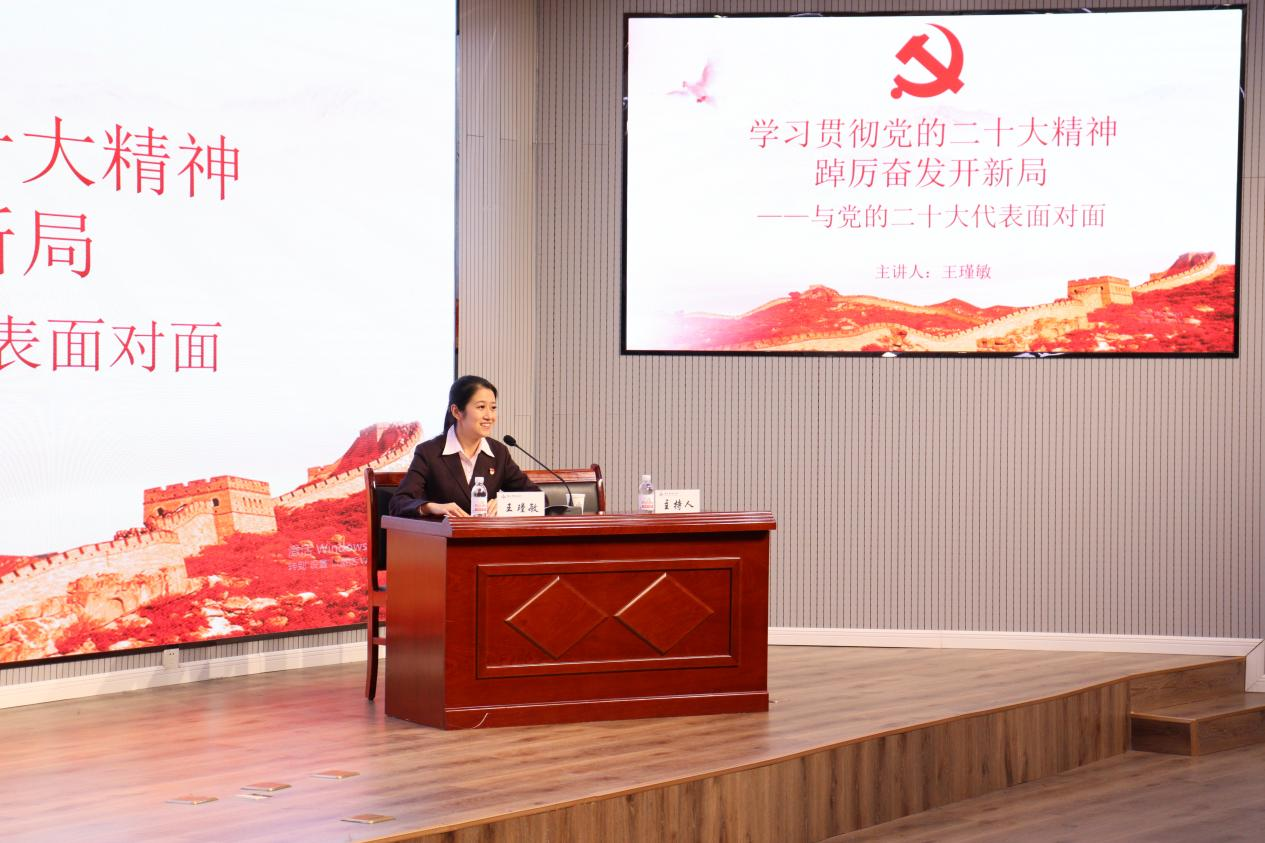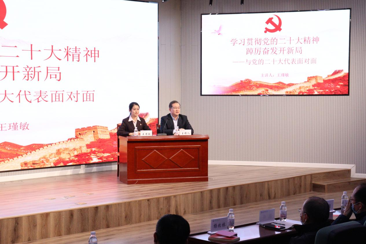 为进一步深入学习宣传贯彻党的二十大精神,11月29日,MK体育邀请党的二十大代表、招商银行青岛分行崂山支行王瑾敏来院宣讲二十大精神。公司党委理论学习中心组成员、党支部书记、辅导员、员工代表聆听了宣讲。宣讲会由公司党委书记任允晓主持。