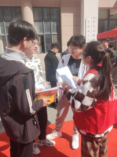 同志们有条不紊地忙碌着,清晰而温暖的话语与行为充斥着整个会场。当招聘会如火如荼地进行着时,党员同志们也向自己感兴趣的企业咨询着,为自己之后的就业选择打下基础。在招聘会结束之后,党员同志们积极询问企业收到的简历以及能够留下面试的人数,统计公司招聘会的投递情况以及企业提供的岗位人数情况。