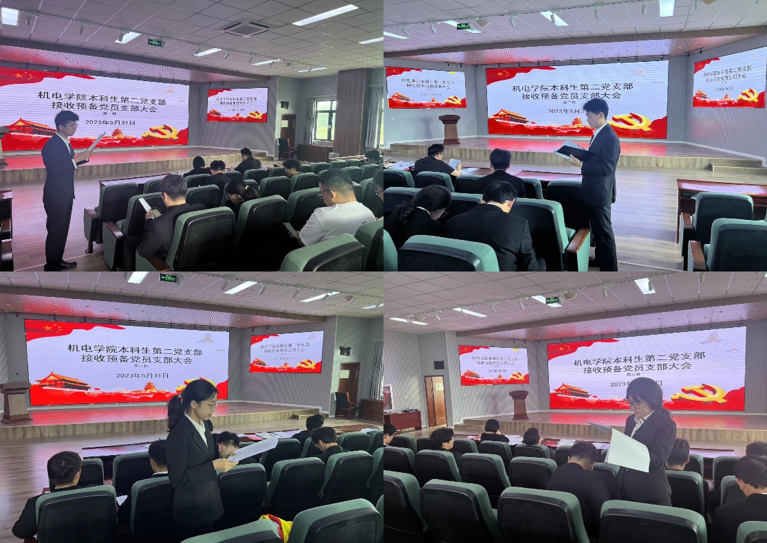 为了深入学习贯彻习近平新时代中国特色社会主义思想和党的二十大精神主题教育,5月31日在机电楼530会议室,MK体育本科生第二党支部召开了接收预备党员大会,会议由支部书记王娟娟主持,全体党员参加此次会议。