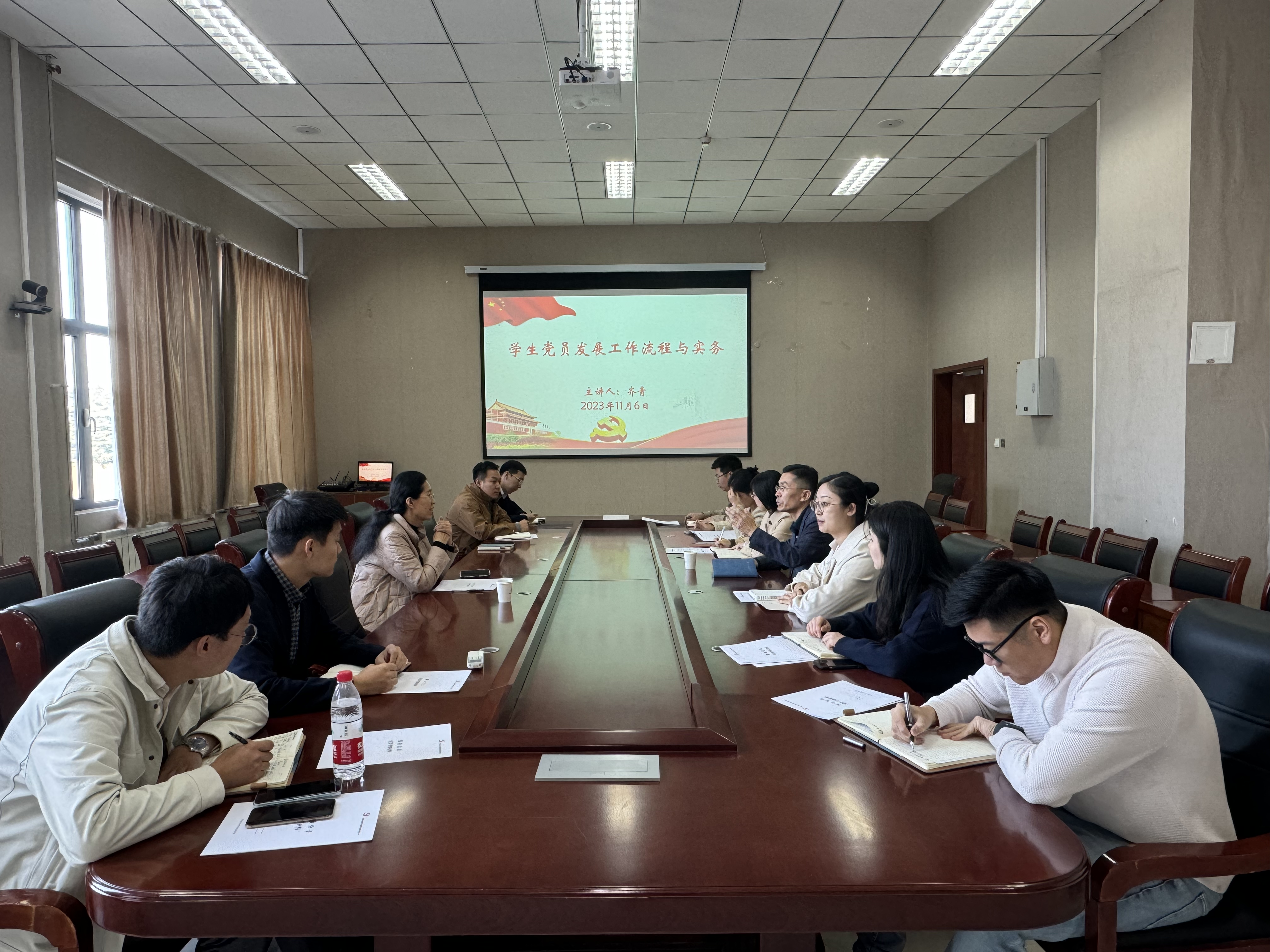 肖强就员工党员发展等工作提出三点要求:一是要增强责任意识,辅导员作为员工党员发展工作的第一责任人,要履职尽责,认真细致做好材料填报;二是要重视教育工作,提高员工党员的教育管理水平,引导员工党员加强自我教育、自我管理、自我服务;三是要建立党员台账,作为辅导员、员工党支部书记,注意工作时效性,及时落实员工党员发展相关工作。