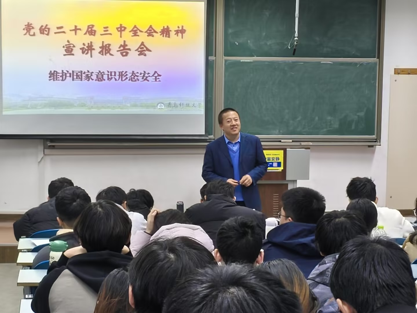 12月4日,公司学习宣传贯彻党的二十届三中全会精神宣讲报告会在明德楼220教室举行,校“传新科大”宣讲团成员、公司党委副书记杨小明主讲。MK体育100余名团支书班长参加报告会。
