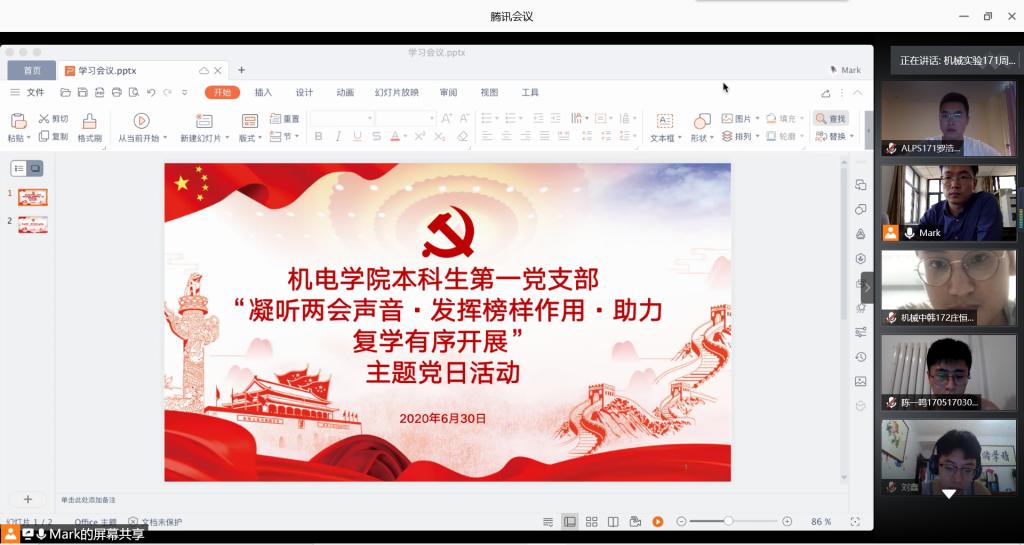 为更好地学习贯彻两会精神,弘扬战 “疫”精神,引导广大党员坚定理想信念、恪守党的宗旨,发挥党员的先锋模范作用。6月30日下午,MK体育本科生第一党支部召开“凝听两会声音·发挥榜样作用·助力复学有序开展”主题党日活动。本科生第一党支部全体党员参会,会议由党支部王玉凯老师主持。
