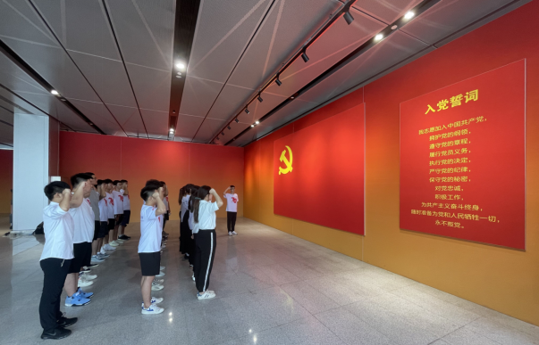 在解说员的引导下,师生党员深入了解了青岛党史波澜壮阔的发展历程,深刻感悟了党百年奋斗历程中青岛承担的历史责任与担当,深切体会到青岛在党领导下取得的翻天覆地的变化。“我志愿加入中国共产党,拥护党的纲领,遵守党的纪律……”在员工党员的带领下,全体党员面对鲜艳的党旗重温入党誓词,重温入党时的郑重承诺和时代使命。
