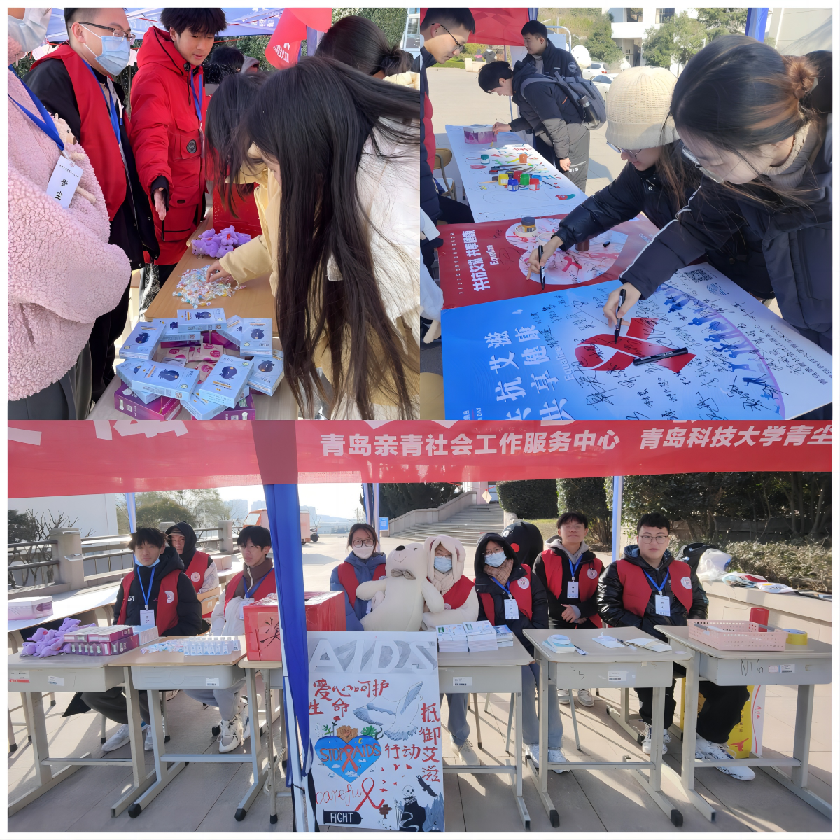 在第35个世界艾滋病日到来之际,MK体育官网青尘义工队在南苑餐厅东门口开展了“共抗艾滋,共享健康”防艾主题宣传活动,宣传防艾知识,引导青科学子正视艾滋、关注艾滋、预防艾滋。