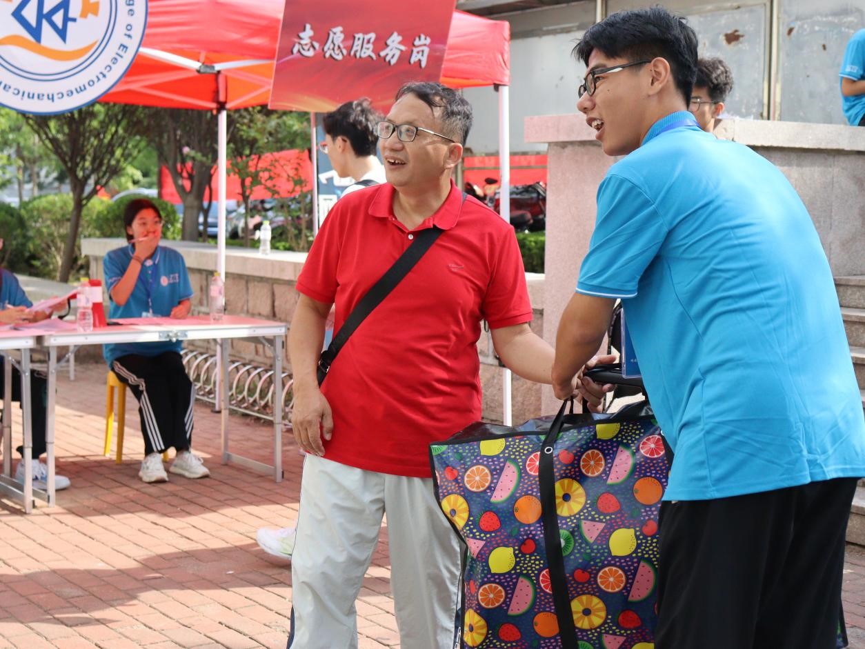 岗位众多,科学分配效率高。公司坚持守正创新,分工协同,热心服务,共设置科创展示工作、公司引导服务、校园文化宣传展示、党员先锋岗等职责明确的志愿者服务岗,为新生现场引导答疑。“同学你好,请问有什么需要帮助?”“来,把材料装好再走,别路上弄丢了……”“先别走,快来拿迎新大礼包……”“这边有照片墙,快来拍张照纪念一下”……公司的迎新志愿者奔走在校园的各个角落,为新生指引方向,协助新生搬运行李,帮助新生完成报到手续,全面推动志愿服务实现新提升。每一名志愿者用饱满的热情、踏实的行动和对志愿服务精神的坚守彰显了机电学子的青春风采,践行了新时代老员工的责任担当,用实际行动讲述着机电“志愿服务第一课”。