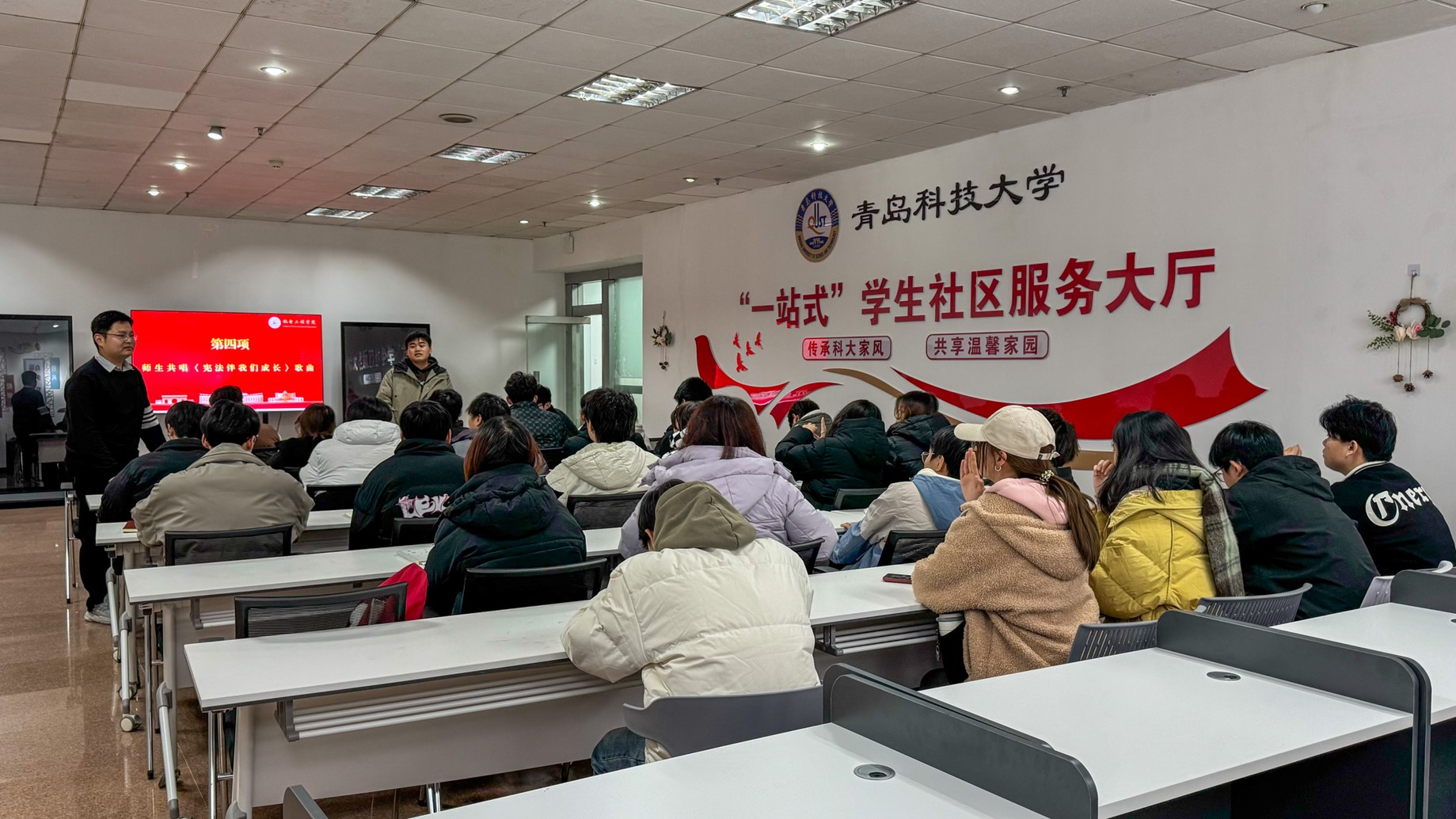 活动期间,在“一站式”社区学业发展中心、MK体育楼530会议室线以及教室等多地开展线下宪法知识学习活动,深化对宪法条文的理解与把握。在班级内部,辅导员和班委积极组织开展宪法知识小课堂,通过考试答题、小组讨论等形式,激发员工学习宪法的热情,促进员工将宪法知识逐步内化为自身的法律素养与精神品质。