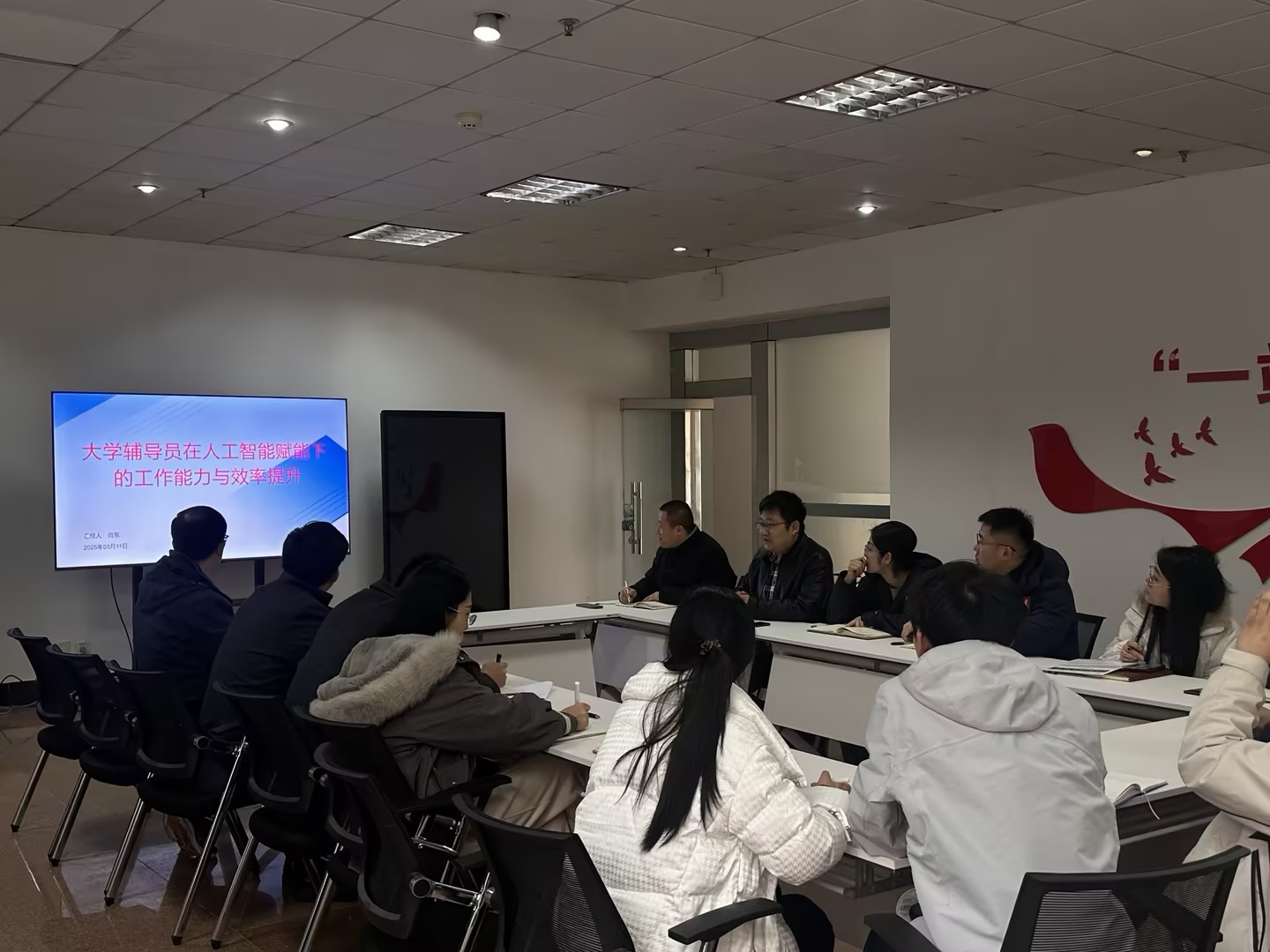 杨小明分享了自己假期学习“辅导员工作与AI融合”专题培训的感受,同时鼓励辅导员老师积极学习新技术,将AI工具融入日常工作,有想法、有标准、有行动,以更精准、高效的方式服务员工成长,提升员工管理工作的质量与温度。杨小明最后指出:我们生长在一个需要不断学习的时代,不能身体在AI时代,大脑还在上个世纪,那我们就无法走进当代青年员工。