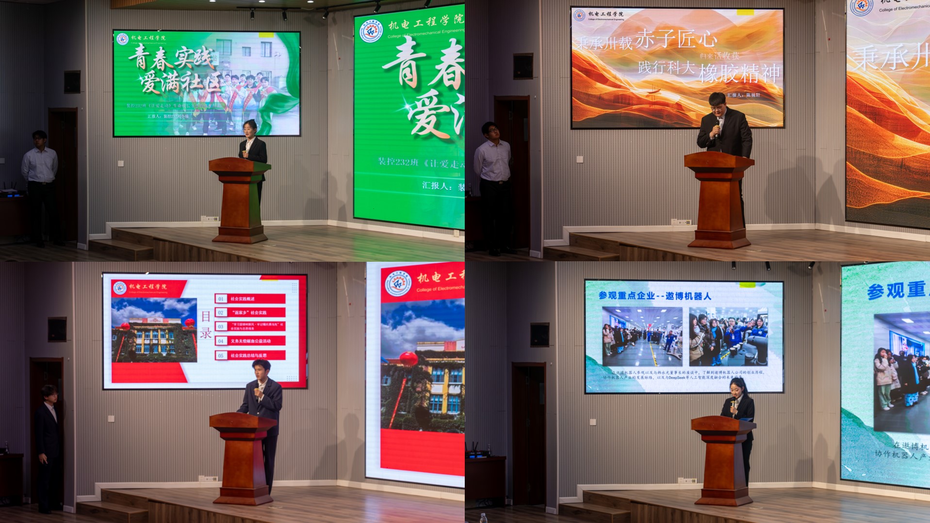 在交流答辩环节,2023级与2024级优秀员工代表围绕“科技助农”、“智能制造助力乡村振兴”、“工程实践进基层”、“社区志愿服务”等主题,结合自身实践经历,分别从活动内容、实践成果、社会影响、媒体宣传等方面展开汇报,全面呈现了本次寒假社会实践的生动图景。