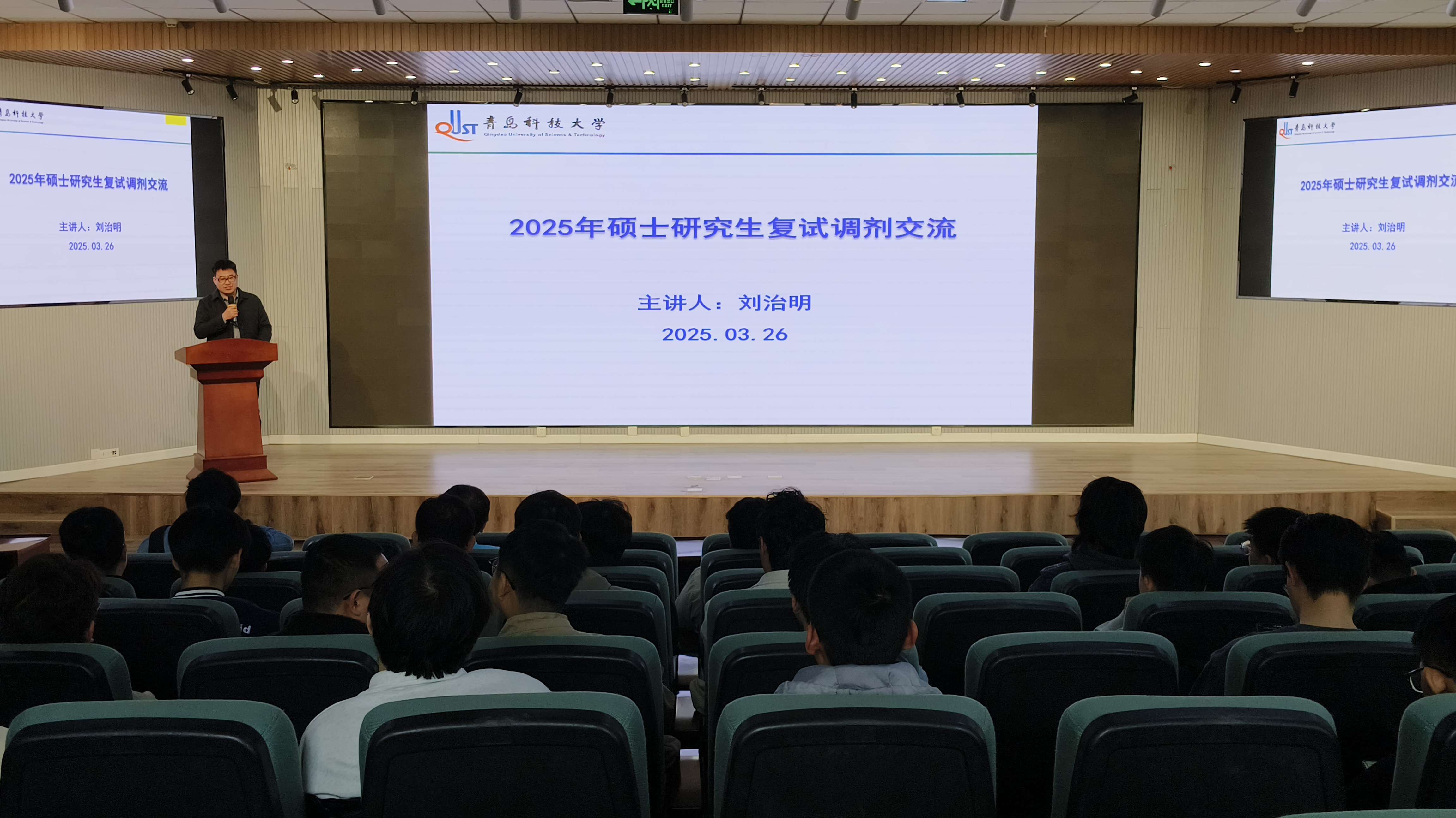 在交流环节,考研学子们踊跃提问,内容涵盖跨专业调剂可行性、线上复试注意事项、导师联系技巧等实际问题。刘治明与在场辅导员老师逐一解答,并针对个性化需求提供建议。