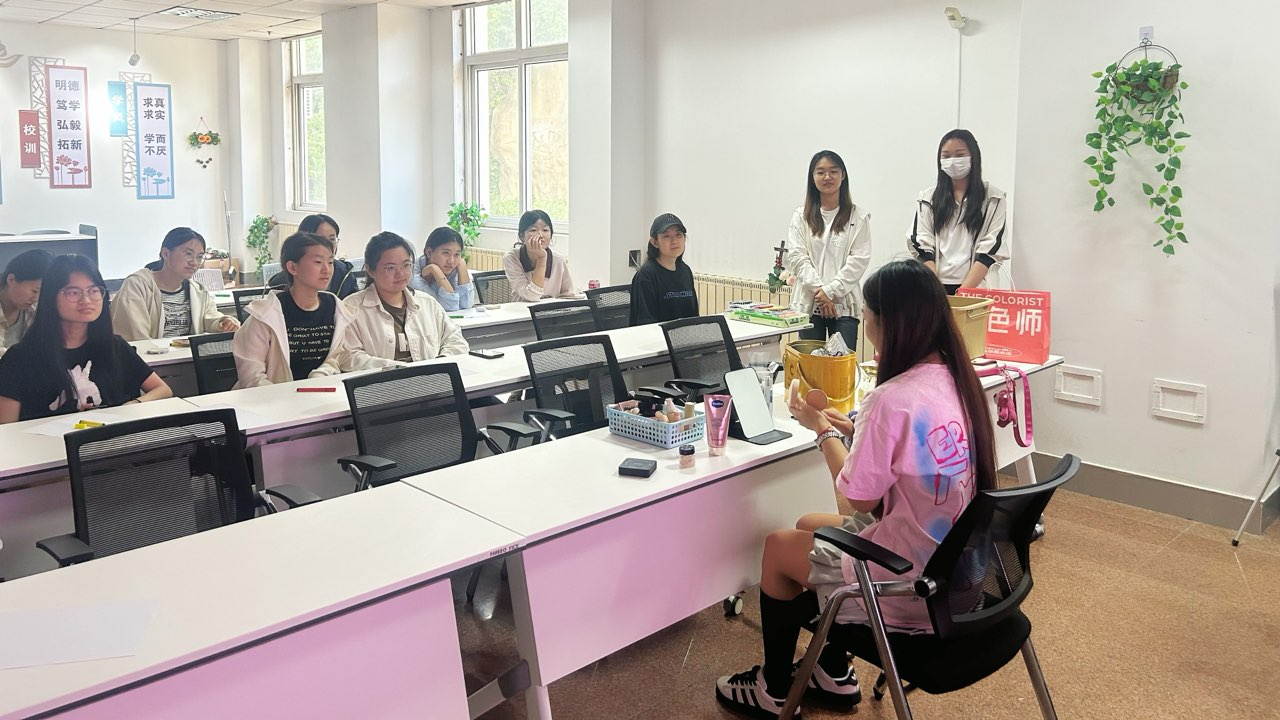 活动当天,宽敞明亮的一站式社区活动室内,美妆工具与产品整齐摆放。田媛先以生动有趣的语言讲解皮肤护理知识,从清洁、保湿到防晒,结合工科女生长时间面对电脑、实验室粉尘等实际情况,推荐适合的护肤产品与方法。随后,进入妆容现场教学环节。